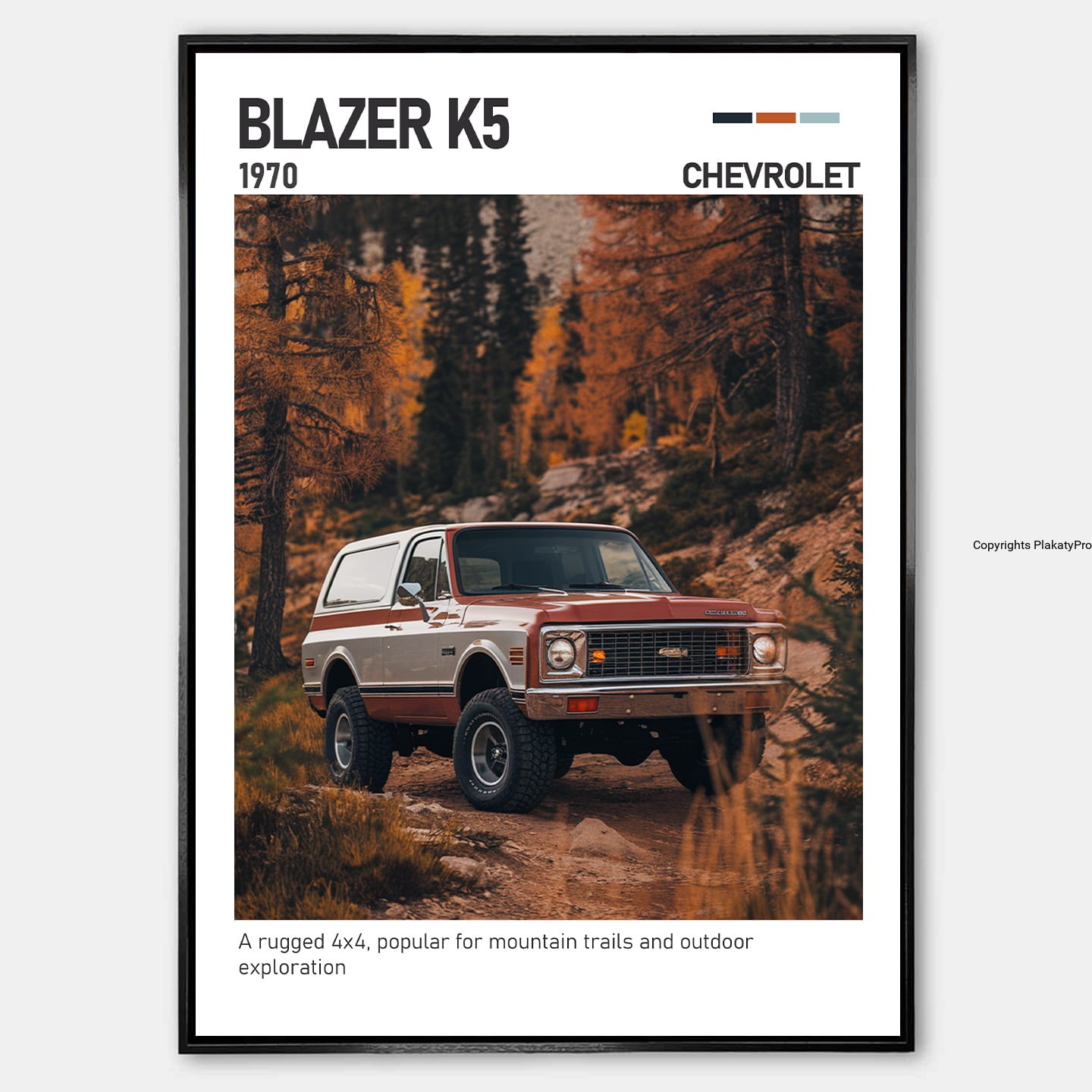 Chevrolet Blazer K5 plakat łączy klasyczny design, najwyższą jakość wykonania i pasję do motoryzacji. To dekoracja, która podkreśla historię, styl i emocje związane z legendarnymi samochodami terenowymi.