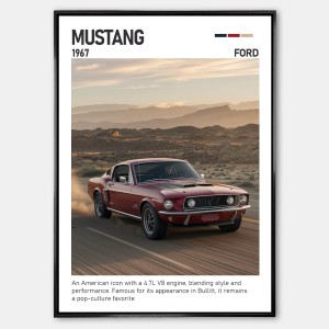 Plakat Ford Mustang wnosi do wnętrza energię, charakter i legendarny duch muscle carów. Jego dynamiczny design podkreśla siłę i elegancję samochodu.
