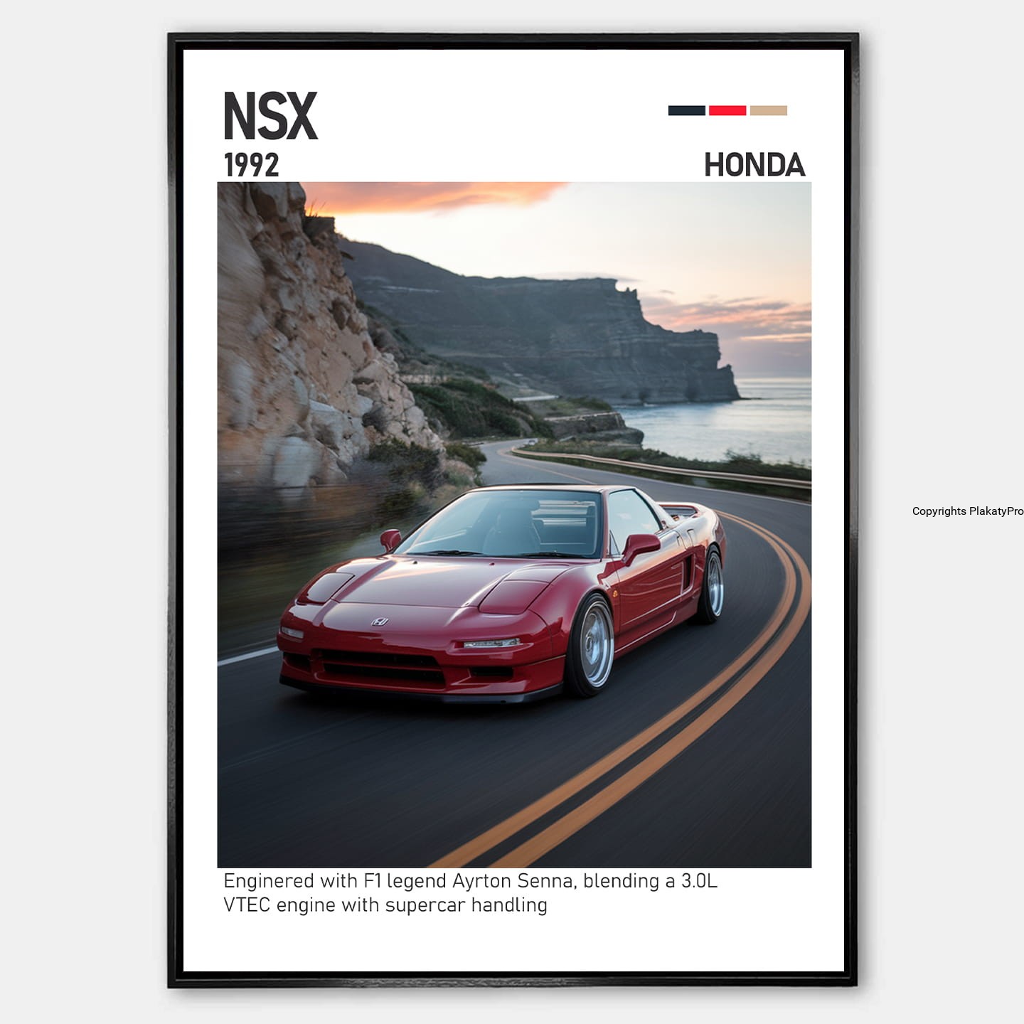 Odkryj Honda NSX w formie wyjątkowego plakatu – symbol japońskiej precyzji, sportowych osiągów i innowacyjnej technologii. Ten plakat samochodowy to idealna dekoracja dla fanów supersamochodów, kolekcjonerów i miłośników motoryzacji. NSX zachwyca lekką konstrukcją, perfekcyjnym prowadzeniem i charakterystycznym designem, który uczynił ją legendą wśród sportowych aut lat 90. i XXI wieku.