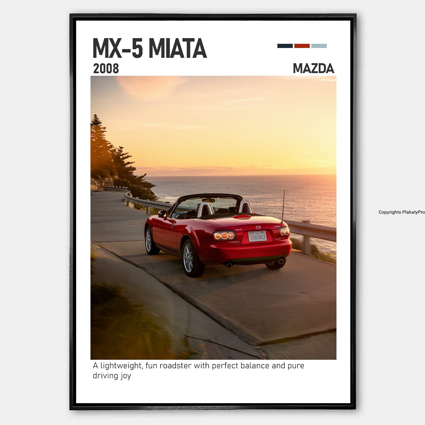 Ten plakat Mazda MX-5 Miata to doskonały prezent dla miłośnika japońskich roadsterów, klasycznych aut sportowych i lekkiej, zwinnej motoryzacji. Idealny na urodziny, święta lub jako wyjątkowy upominek dla kolekcjonera.