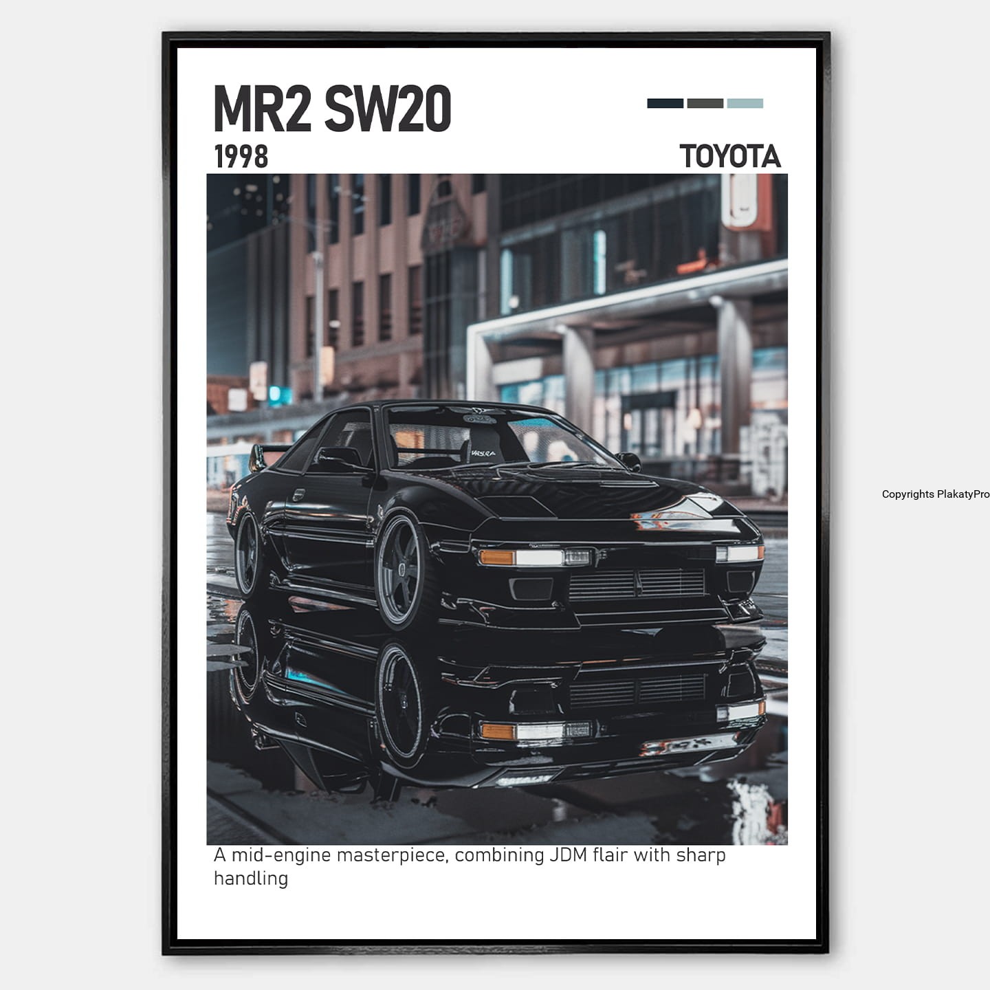 Toyota MR2 SW20 plakat łączy wysoką jakość wykonania, klasyczny design i pasję do japońskich samochodów sportowych. To dekoracja, która podkreśla styl, legendarny charakter i sportowy duch MR2 SW20.