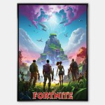 Plakat przedstawia szczegółowo zaprojektowaną scenę lub postacie znane z Fortnite. Intensywne kolory, dynamiczne układy i unikalny styl graficzny odzwierciedlają energię i kreatywność gry, przenosząc jej klimat do Twojego pokoju. -