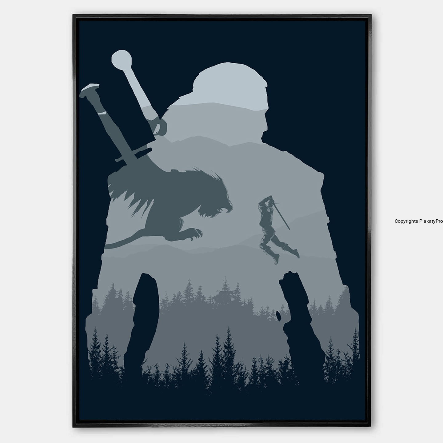 Wyrazisty design: Grafika na plakacie została stworzona z najwyższą dbałością o szczegóły, dzięki czemu doskonale oddaje charyzmę i siłę Geralta. Mroczny klimat, realistyczne detale oraz intensywne barwy sprawiają, że plakat przyciąga wzrok i staje się wyjątkowym elementem dekoracyjnym dla każdego fana Wiedźmina.