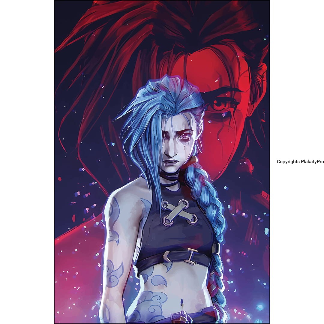 Grafika na plakacie została stworzona z najwyższą dbałością o szczegóły, co pozwala uchwycić zarówno energię Jinx, jak i jej złożoną osobowość. Intensywne barwy oraz dynamiczna kompozycja nadają mu niezwykłego charakteru, który przyciągnie uwagę każdego fana. -