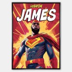 Poczuj moc Króla! Ten plakat LeBrona Jamesa w stylu komiksowym to hołd dla jednej z największych ikon NBA, przedstawionej jako prawdziwy superbohater. Dynamiczny, kolorowy i pełen energii – idealny dla fanów koszykówki, kolekcjonerów oraz wszystkich, którzy cenią potęgę talentu, siły i determinacji.