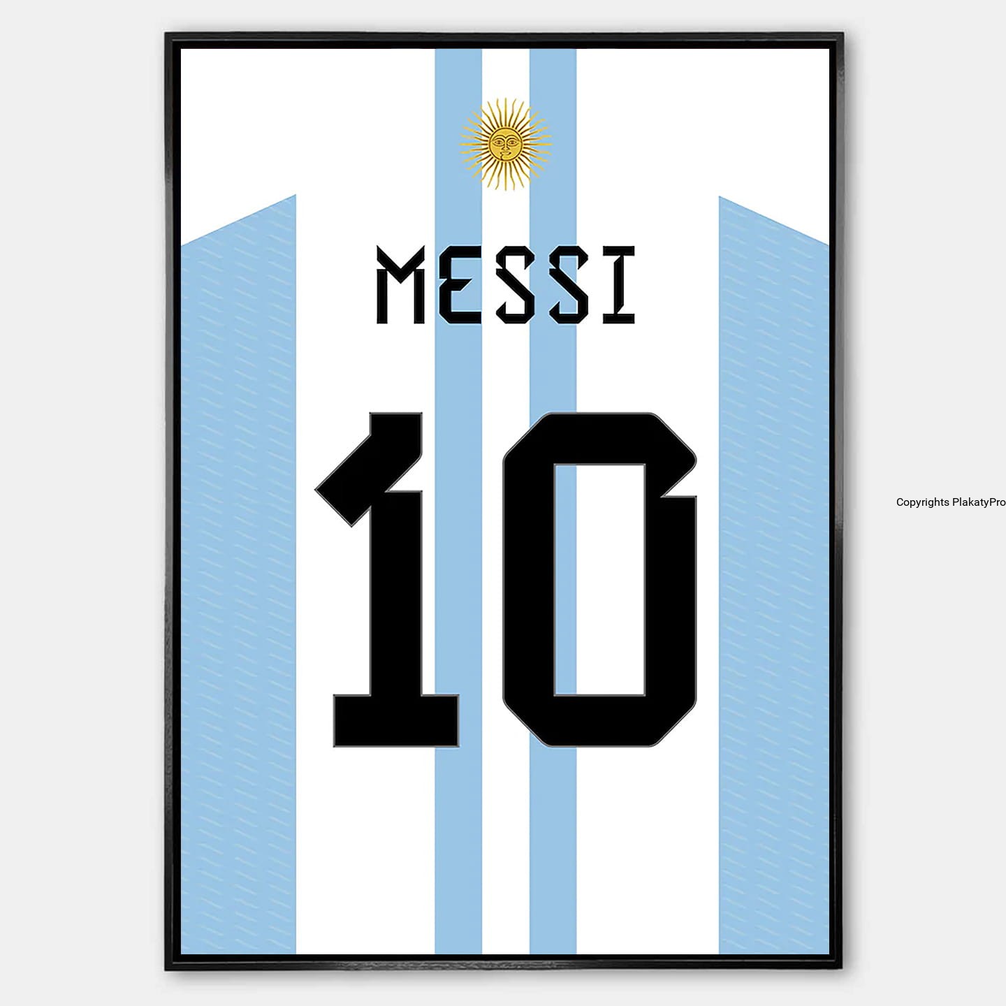 Marzysz o tym, by Twoje ulubione gwiazdy piłki nożnej towarzyszyły Ci każdego dnia? Plakat z piłkarzami to idealny sposób, by wyrazić swoją pasję do futbolu i dodać wnętrzu sportowego charakteru. Jest to plakat z oryginalnym wzorem koszulki w jakiej grał Lionel Messi w reprezentacji Argentyny.