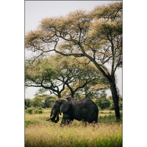 Monumentalny, dostojny, wolny. Słoń afrykański to nie tylko największy ssak lądowy – to symbol siły, mądrości i głębokiego spokoju. Ten plakat to zaproszenie w podróż do serca Afryki – krainy pełnej słońca, kurzu, dzikiej natury i niepowtarzalnych dźwięków sawanny.